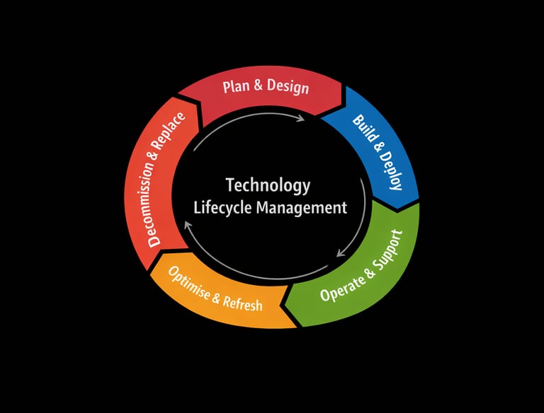 Our services cover procurement guidance, installation and commissioning, patching and upgrades, asset tracking, and end-of-life planning. By actively managing each stage of the infrastructure lifecycle, we help reduce outages, control costs, maintain compliance, and ensure your technology continues to support the business, not hold it back.